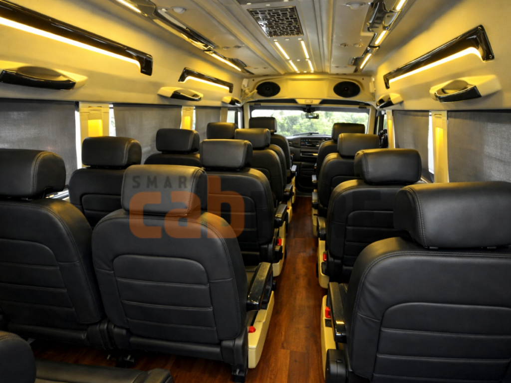 Make your group trip more convenient and enjoyable by renting our premium 15 seater tempo traveller lease in Delhi. This spacious form of transport is perfect for family vacations, work trips, wedding transports, or group tours, and it has been designed for maximum comfort for all passengers with an emphasis on smoothness and relaxing travels. You will find the seating to be plush and that the interiors are modern–like, so it will be a great vehicle for local journeys as well as longer trips outside of Delhi. In addition to offering push back seating for your comfort and strong air conditioning, this vehicle also comes with larger windows than normal and has ample luggage storage to provide you with an enjoyable trip. Whether you are planning a local trip or a longer trip anywhere in India (such as Jaipur, Manali, Haridwar or Agra), this vehicle should be your number one choice for both reliability and comfort during your journey, no matter how far away from home you might be. A professionally trained driver will also ease your journey by ensuring a smooth and safe ride from location A to B with no hassles. Choose our 15 seater tempo traveller rental option because of the option for clean vehicles, punctual service, and transparent pricing. Renting a 15 seater traveller for your group travel in Delhi NCR and to any major destination in India is the best way for everyone in the group to get to the destination at the same time and comfortably.