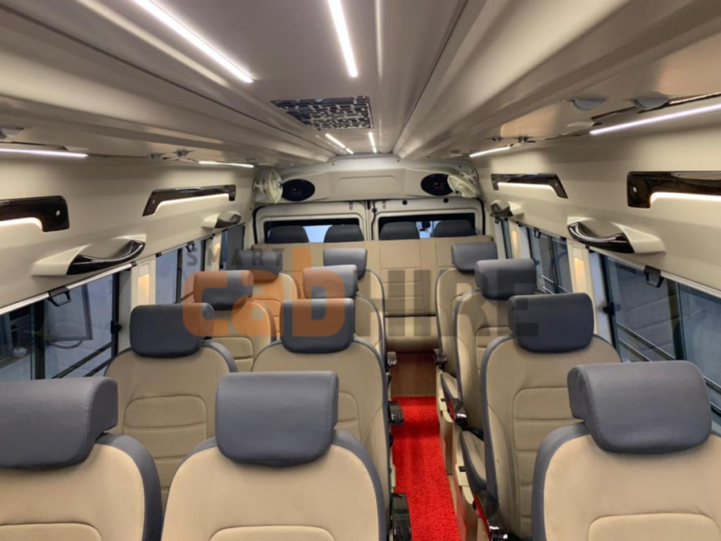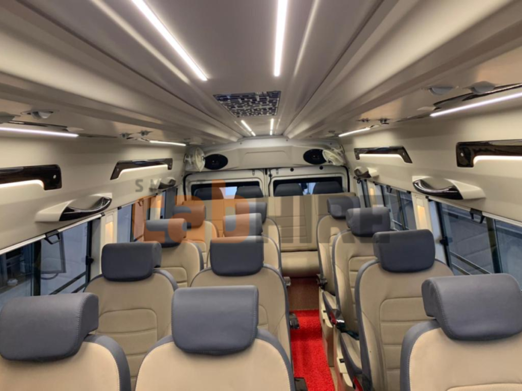 When organizing a large group‘s trip, choosing the right vehicle makes it simple! Our 20 seater tempo traveller for rent in Delhi provides an enjoyable and easy travelling experience for family reunion attendees, corporate teams or groups of wedding guests, along with multiple tour group scenarios. Your entire experience travelling with us will be relaxed and stress-free due to our luxurious design, modern decor, and professional driver service. This premium vehicle has wide pushback seats, powerful air conditioning, ample legroom and enough space for luggage; therefore, it is perfectly suited to take all the traveling hassle out of long distance travel and city driving: whether you want to free up your weekend with a getaway, enjoy a pilgrimage, attend a corporate function, or get to the airport on time. The high-roof design of our twenty passenger tempo traveller permits easy movement inside, while the suspension of the vehicle ensures that you will have a smooth ride, whether on highway or city roads. Reliability, cleanliness, and the comfort of our customers are the primary focus of our rental service. Our fleet of vehicles is kept in excellent condition and each vehicle is driven by a highly experienced driver who knows the local area well as well as the various out of town highways. Whether you are traveling within Delhi NCR or going out of Delhi to such destinations as Jaipur, Manali, Haridwar, Agra, etc., we provide a flexible package style based on your travel plans.